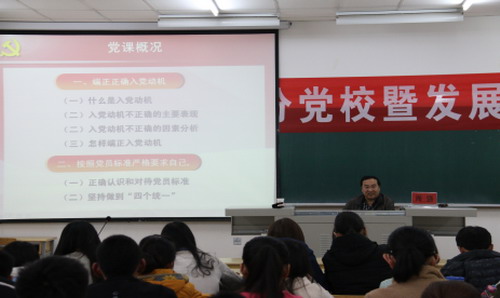 开班仪式结束后,周强作了题为“端正入党动机,争做合格党员”的讲座。他结合实际,用幽默风趣的语言向同学们介绍了什么是入党动机,怎样端正入党动机,也使同学们对自身的入党动机做了深刻的反省反思。最后,周强强调,同学们要按照党员标准严格要求自己,加强党性修养,坚持做到“四个统一”,争做社会主义事业的可靠接班人和合格建设者。