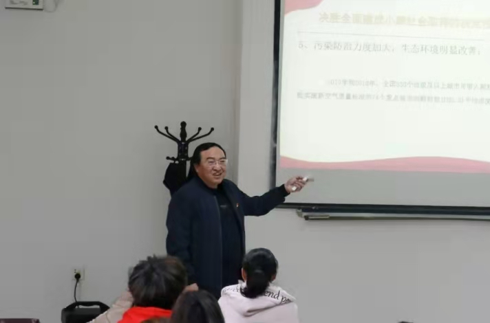 周强书记以十九届五中全会的议题开篇,带领同学们学习了十九届五中全会的重大意义及其时间背景的特殊性。随后,他通过幻灯片放映与视频播放相结合的方式,向大家全面讲述了十九届五中全会精神,详细介绍了决胜全面建成小康社会取得的决定性的十大成就。最后周强书记带领大家展望2035年基本实现社会主义现代化的远景目标,并表示希望同学们深入学习贯彻五中全会精神,认真领会其重大意义,为实现2035年远景目标而奋斗。