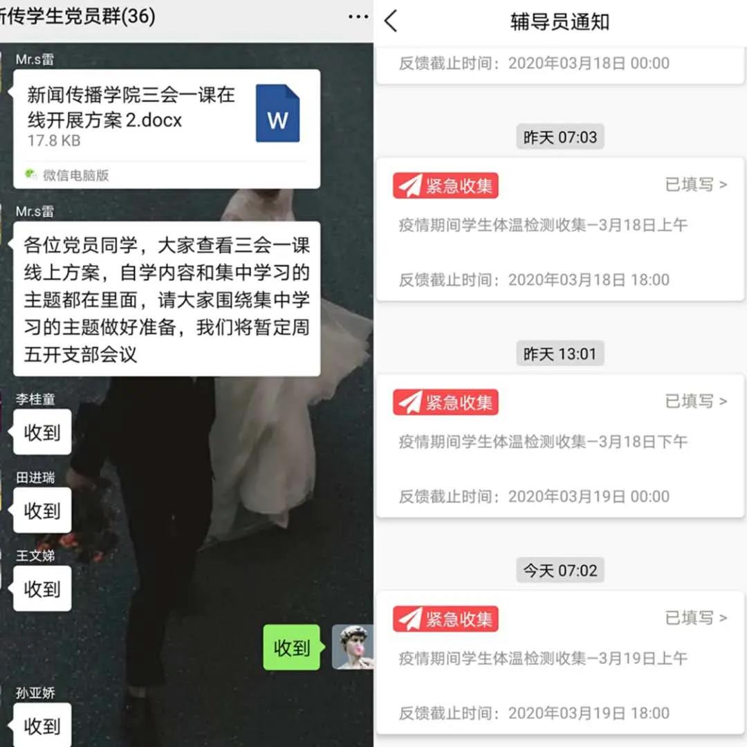 微信群里,贝宝官网书记发布通知,对疫情期间学生基本情况进行排查统计,半个小时后 ,又艾特了那位没有回复的同学。我打开表格,一一对照,如实上报身体健康状况和近期是否外出等信息。我已习惯每天睁眼第一件事,报备身体健康状况,去“今日校园”打卡,手机24小时开机,关注群消息。