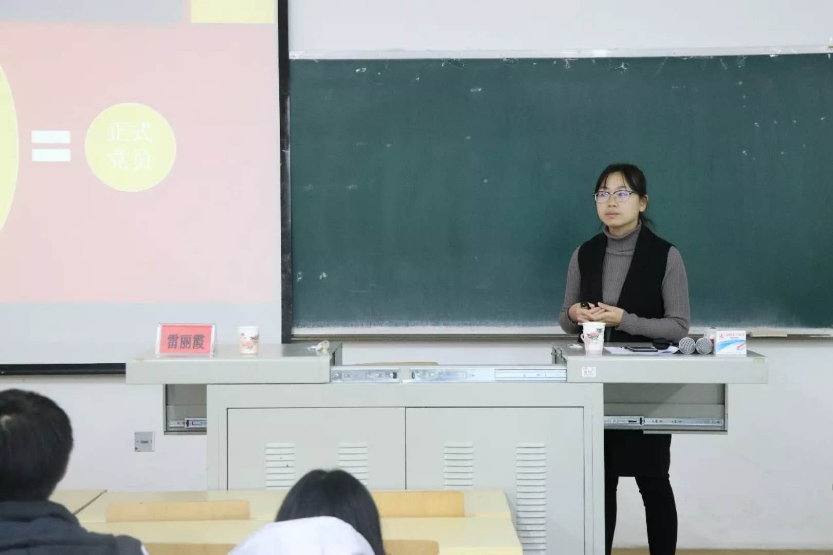 党课上,雷丽霞就入党积极分子的确定和培养教育、发展对象的审核以及预备党员的接收、审批以及预备党员转正阶段的程序和要求等一一做了讲解。同时,雷丽霞着重强调了每一阶段考察审核的标准,希望同学们注重平时表现,争取早日成为一名合格的共产党员。