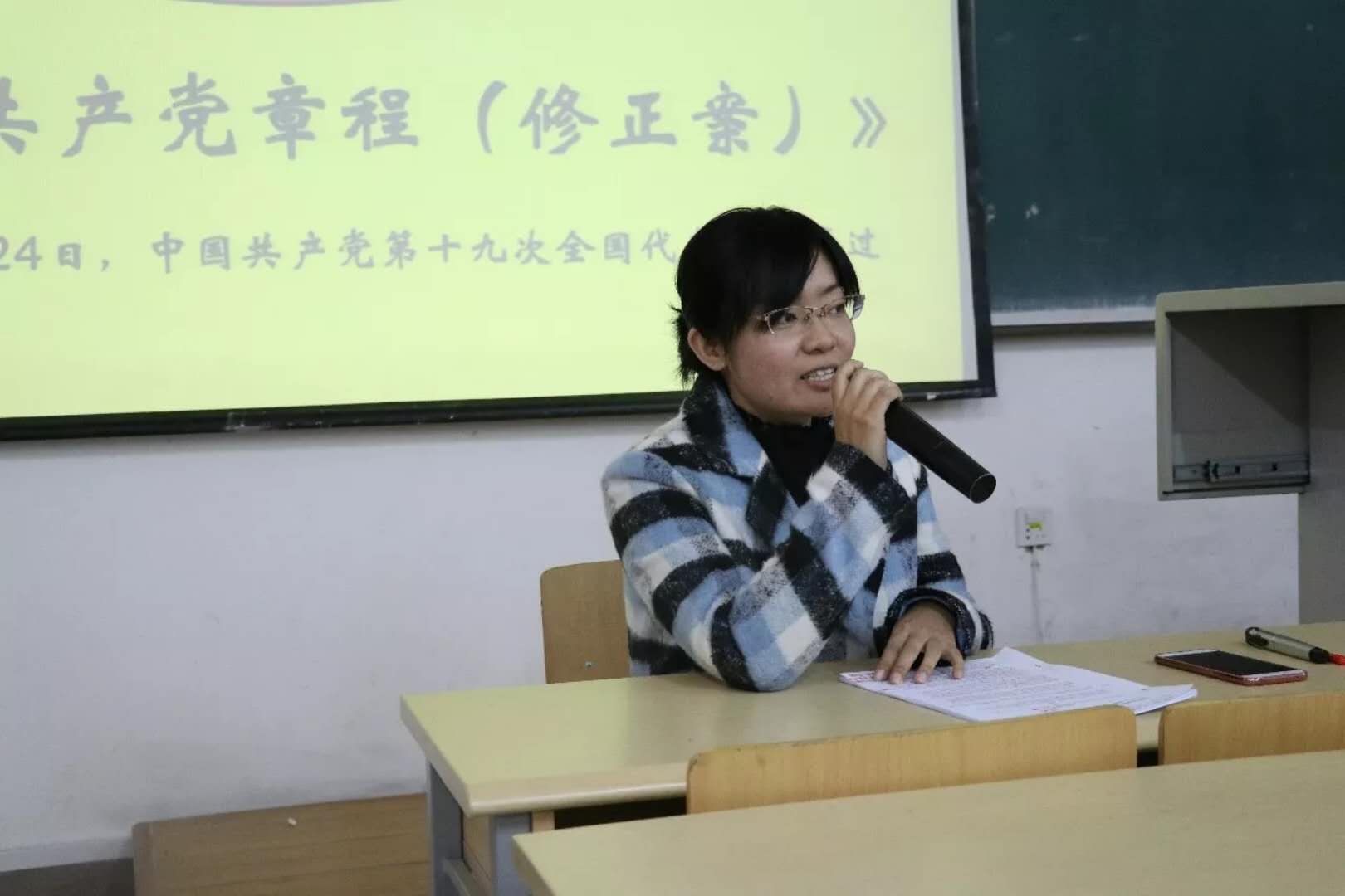 为进一步营造学习宣传党的十九大精神的良好氛围,12月6日下午,我院组织第三期党员发展对象和第四期入党积极分子开展专题学习,原原本本的学习了新修订的《中国共产党章程》。党课由学生办公室主任李瑾和学生党支部书记雷丽霞解读讲解。