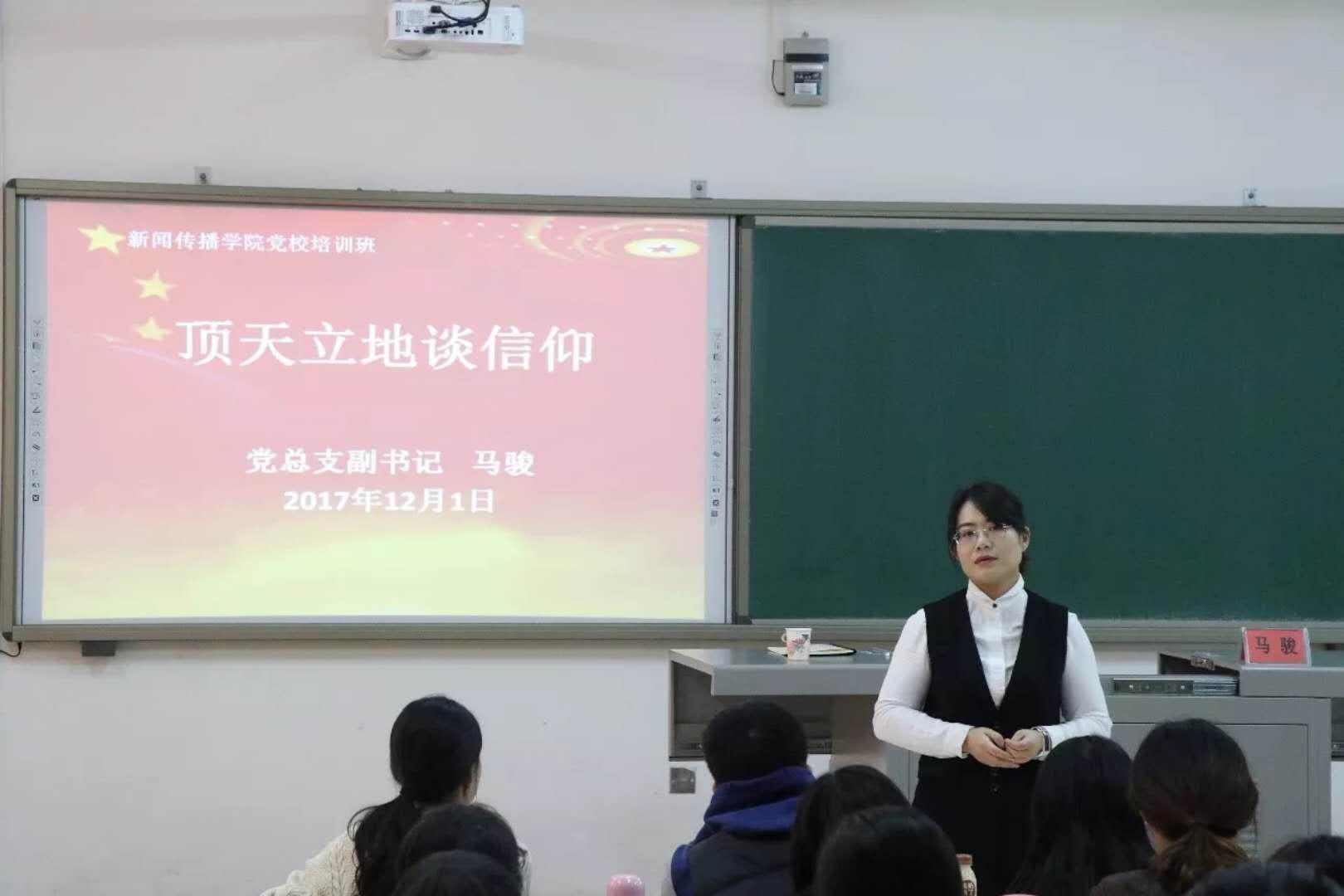 12月1日,我院在文荟楼405教室开展了以“顶天立地谈信仰”为主题的党课活动。党课由我院党总支副书记马骏主讲,第三期党员发展对象和第四期入党积极分子参加。