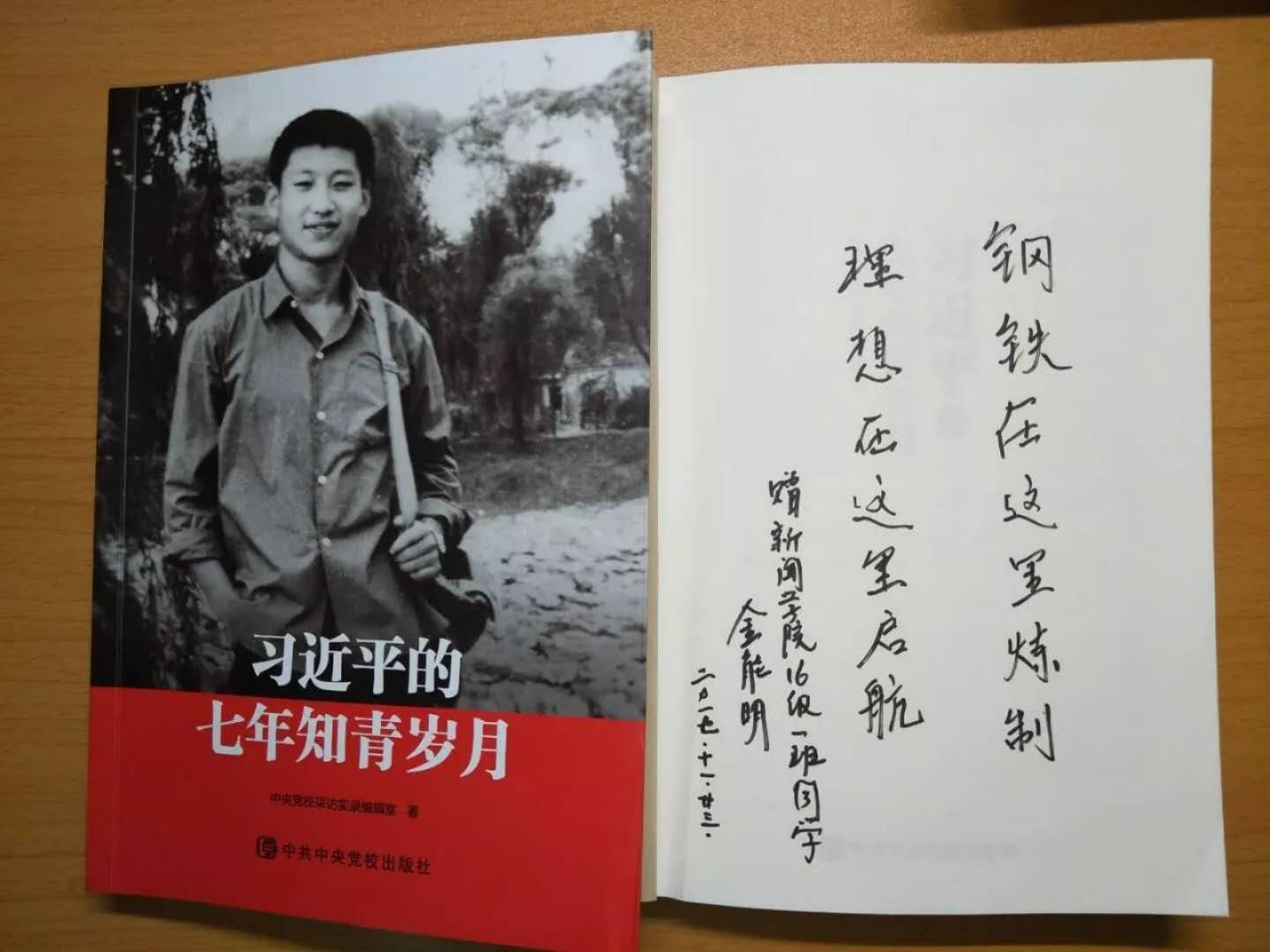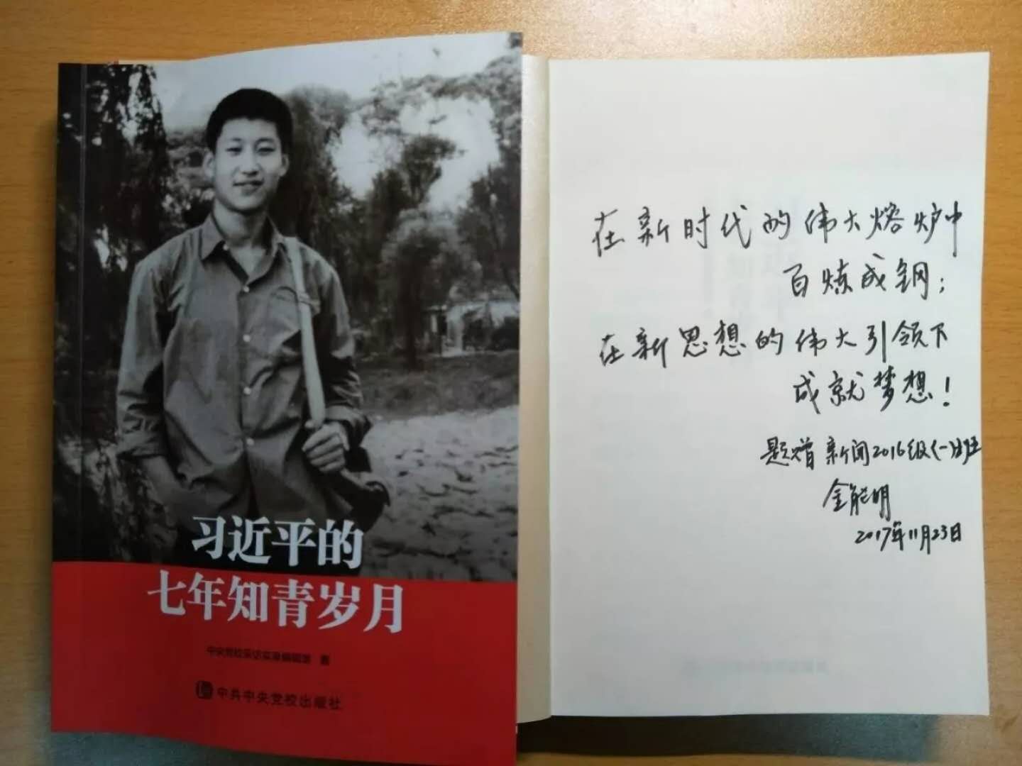 金能明书记对同学们的发言给予肯定,并对同学们在今后的工作、学习以及生活方面提出了四个深刻认识:一是要深刻认识新成就;二是要深刻认识新判断;三是要深刻认识新思想;四是要深刻认识中华民族伟大复兴的新蓝图。金书记在讲到习近平总书记对于青年学子的殷切希望时,他动情地引用“青年兴则国家兴,青年强则国家强。青年一代有理想、有本领、有担当,国家就有前途,民族就有希望。”这句话,希望同学们要坚定理想信念,勇做时代的弄潮儿,在实现伟大中国梦的实践过程中放飞青春理想,书写人生华美的乐章。最后,他在赠予同学们的两本书上分别写到“在新时代的伟大熔炉中百炼成钢,在新思想的伟大引领下成就梦想”和“钢铁在这里炼制,理想在这里启航”,并提出作为新闻学专业的同学们,一定要牢记两句话:“读万卷书,行万里路”和“铁肩担道义,妙手著文章”。