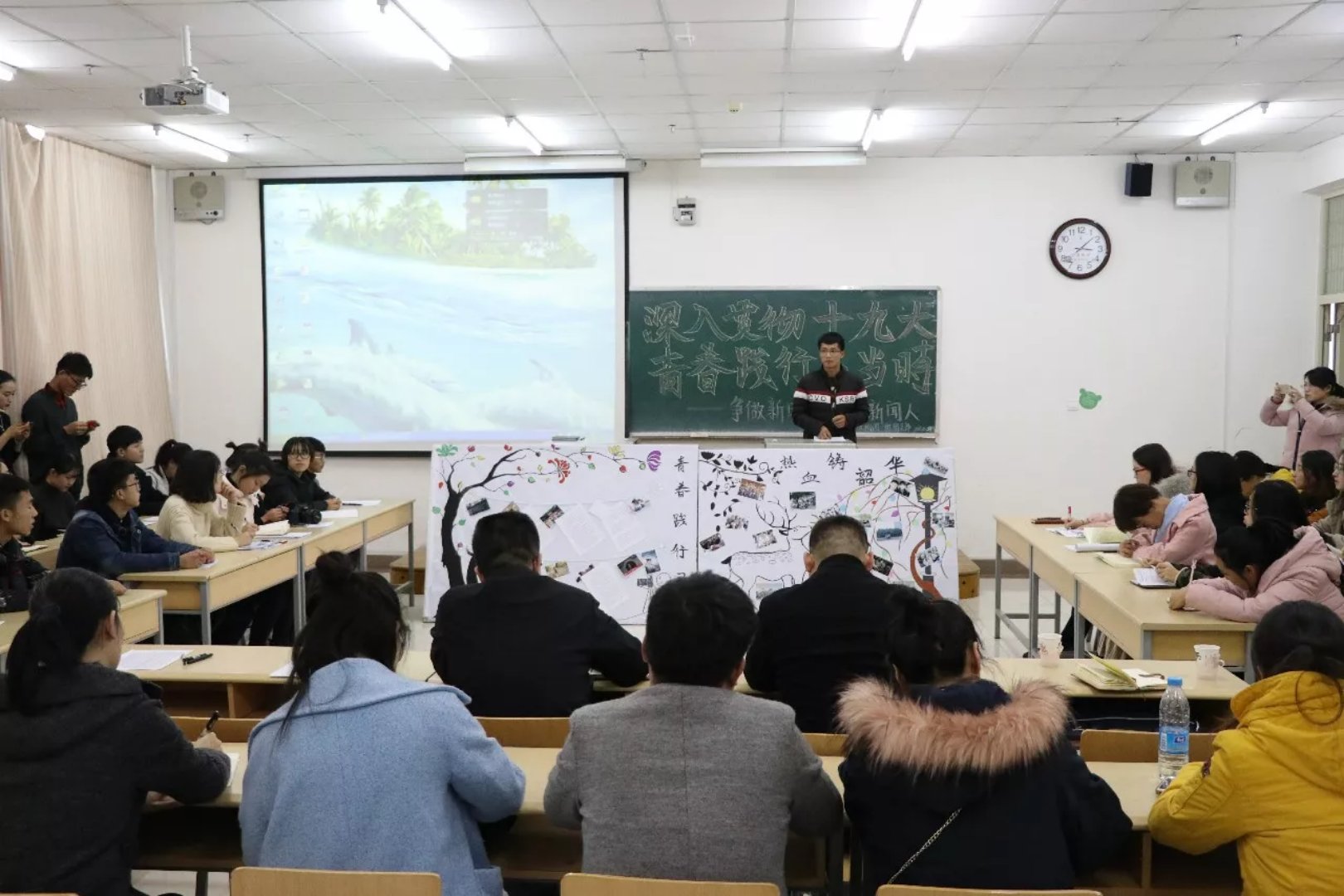本次团日活动的顺利开展,使同学们更加明确了对于党的十九大精神的认识,更加深刻理解了“做党的政策主张的传播者、时代风云的记录者、社会进步的推动者、公平正义的守望者”的精神实质,从而对“如何做一名新时代下的合格新闻人”这一要求有了更为清晰明确的认识。