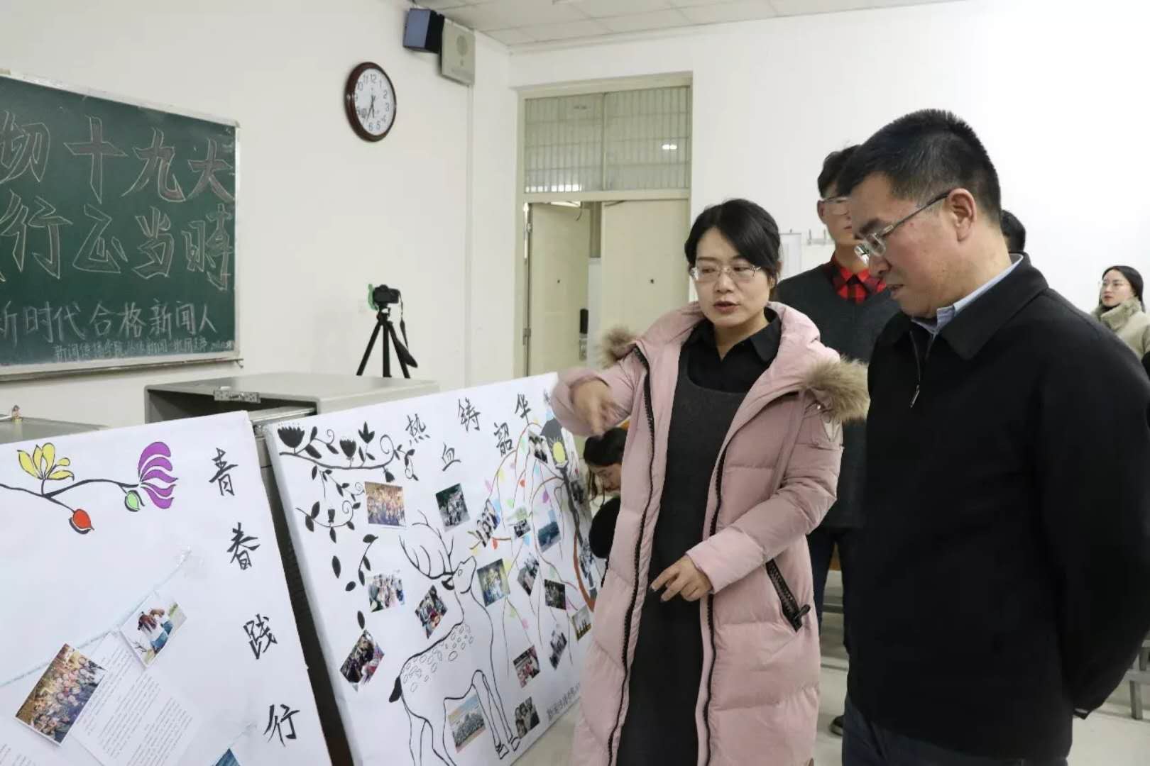 11月23日下午,贝宝官网 新闻一班于文荟楼404教室开展了以“深入贯彻十九大,青春践行正当时”为主题的团日活动。贝宝官网 党委书记金能明、团委书记王彦庚、贝宝官网 党总支副书记马骏和全体辅导员以及学生党员参加了活动。