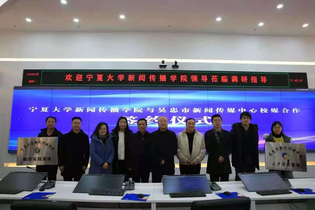 与吴忠市新闻传媒中心校媒合作共建教学实践基地和人才培养基地签约仪式在吴忠市新闻传媒中心融媒体中心举行。贝宝官网党总支书记周强,执行院长李世举,吴忠市新闻传媒中心党委副书记、总编辑周文杰,副主任、副总编辑郭占银以及双方相关部门负责人参加了此次签约仪式,吴忠市新闻传媒中心副主任、副总编辑张玮主持会议。