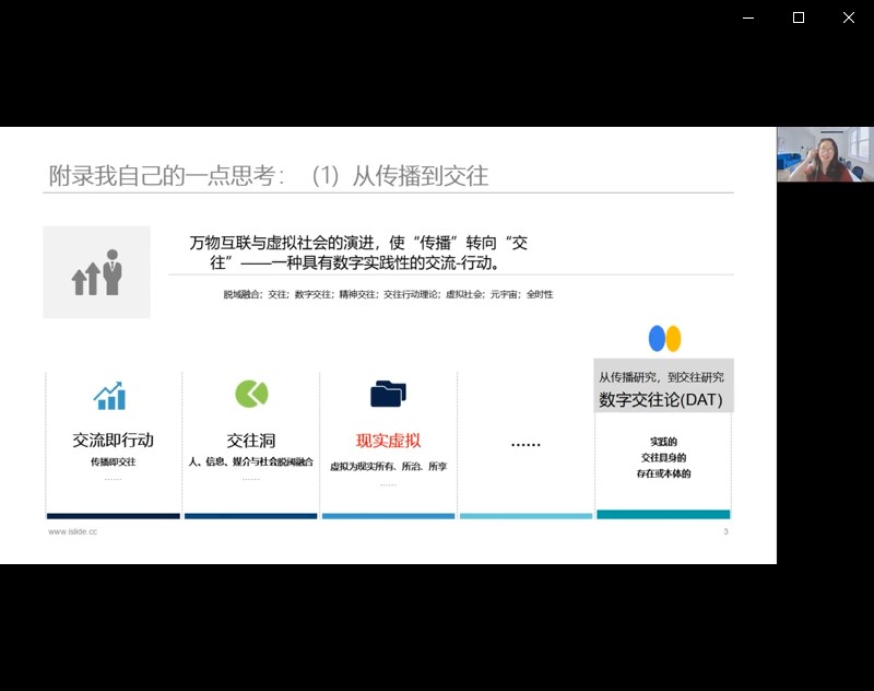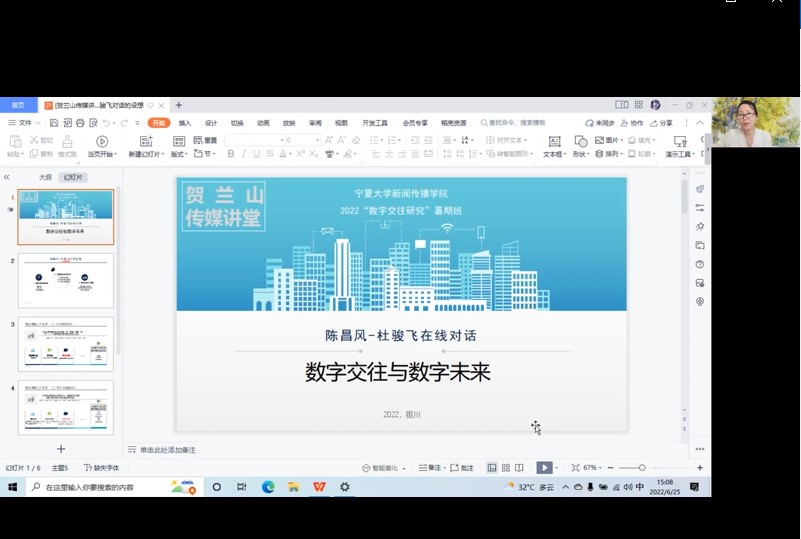 在此期间,“贺兰山传媒讲堂”暨2022“数字交往研究”暑期班顺利举办。此次暑期班共有研究生19人、优秀本科生6人参加。在暑期班的10次课程中,杜骏飞教授关于“数字交往研究”提出了许多学术性的新见解,同时分别与清华大学新闻与传播贝宝官网教授陈昌凤、中国人民大学新闻与传播贝宝官网教授彭兰进行了在线对话,南京大学助理研究员吴志远、在读博士马一琨也进行了专题讲座,新颖的授课形式和前沿的学术思想使同学们受益颇深。