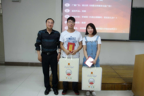 伴随着青春洋溢的开场舞,颁奖典礼的序幕缓缓拉开。贝宝官网副书记马骏老师宣读了传播文化艺术节的获奖名单,肯定了同学们在本次传播文化艺术节中取得的成绩。随后贝宝官网领导和评委老师分别为获奖学生代表颁发证书和奖品。