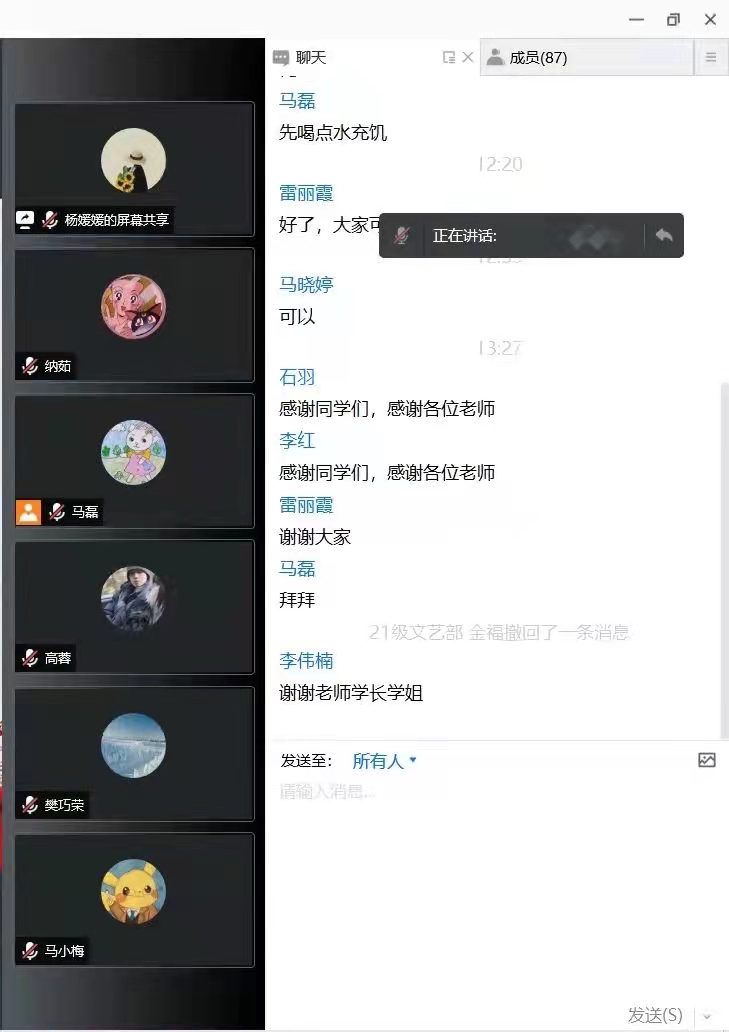 11月4日中午,我院于腾讯会议开展“贝宝官网 第七届团委、学生会中期调整暨表彰大会”线上会议。本次会议由宣传部主要负责人纳茹主持,学生工作办公室主任雷丽霞、辅导员杜玥、辅导员助理于晨曦出席,团委、学生会全体成员、各班级班委参加。