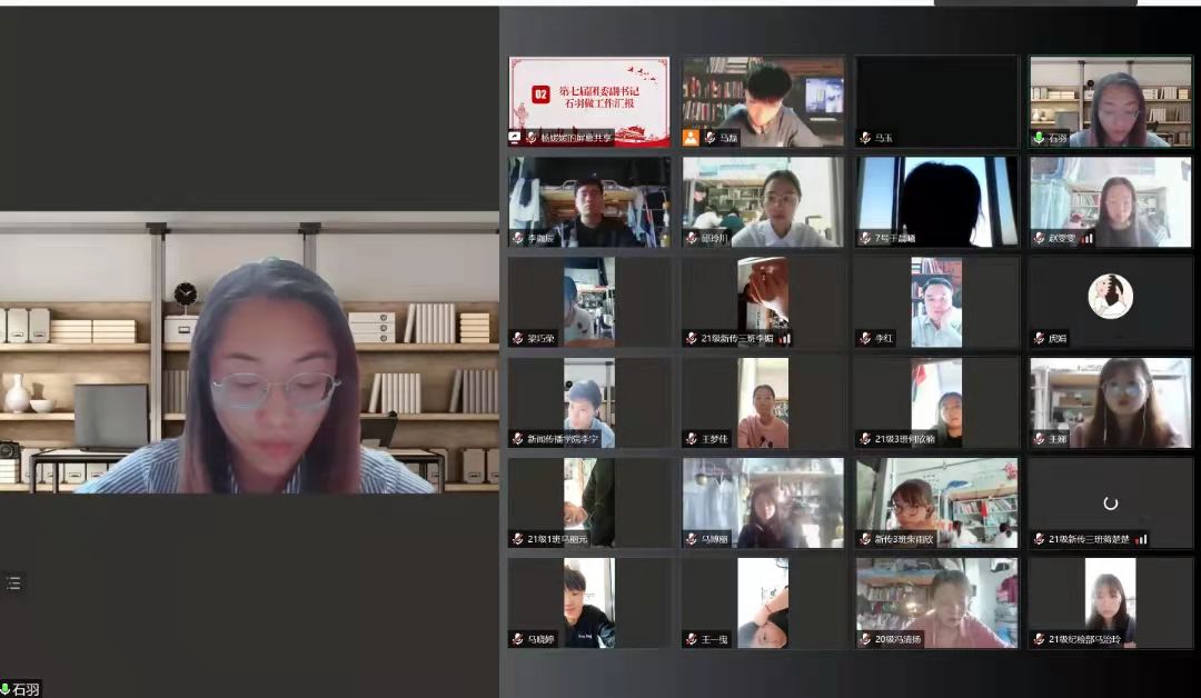 会议伊始,第七届团委副书记石羽从组织建设、党史学习教育、团委所作的各项工作的开展情况进行汇报;对不足与缺点进行反思,提出加强思想引领、增强创新意识、健全骨干建设、明晰自身定位四个方面的工作要求,鼓励团委工作在未来更上一个新的台阶。第七届学生会主席团成员王娣强调学生会始终要以全心全意服务同学为宗旨,努力做好与广大同学的联系,并对学生会工作情况进行详细介绍,希望学生会各成员以积极、负责的态度投入工作,认真谨慎。