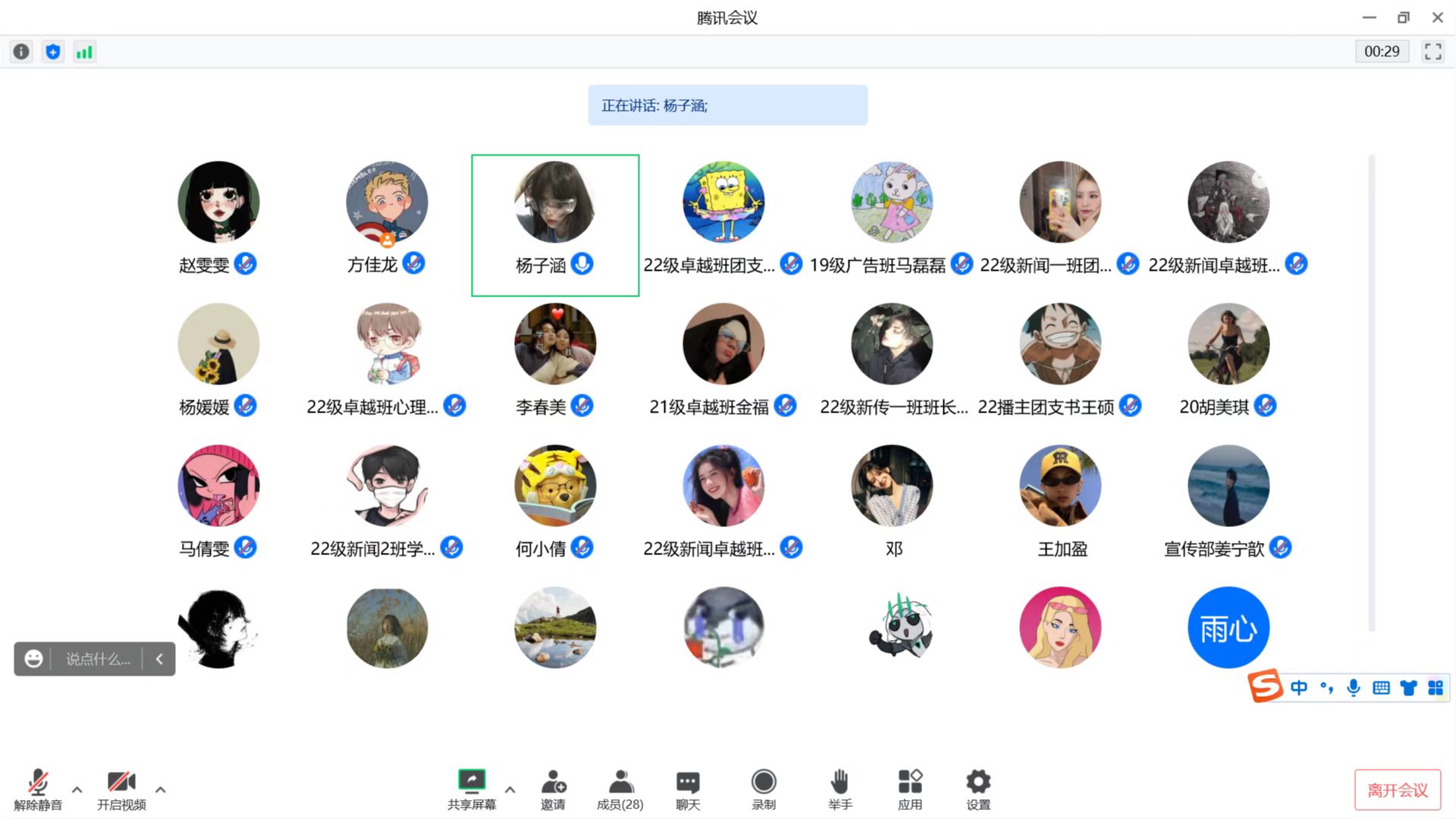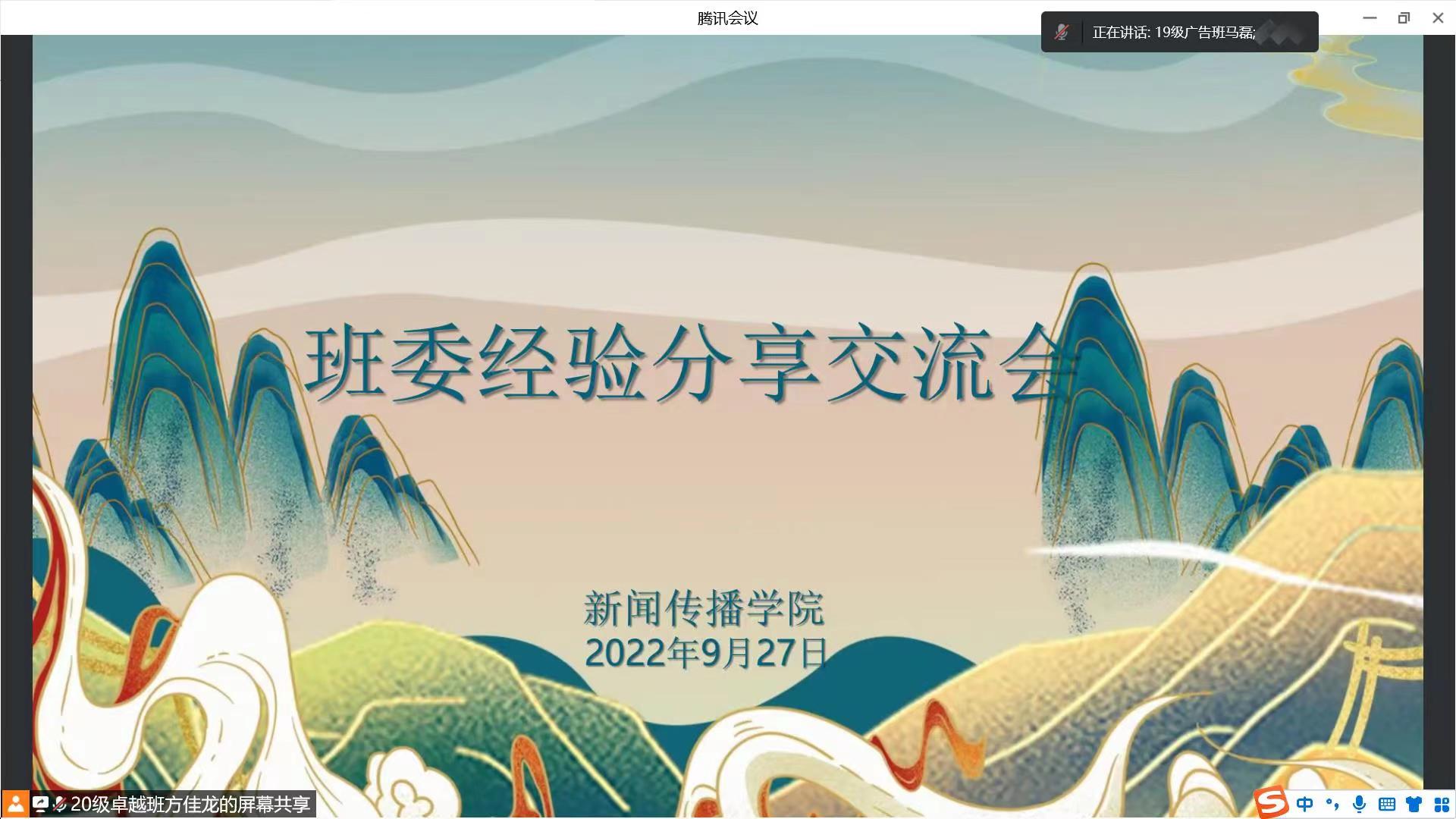 为帮助新生班委尽快熟悉工作,提升班级工作质量,9月27日晚,我院召开班委经验分享线上交流会。学生工作办公室主任雷丽霞出席会议,2020级、2019级班委代表及2022级新生班委参会,会议由学生会轮值主席马磊磊主持。