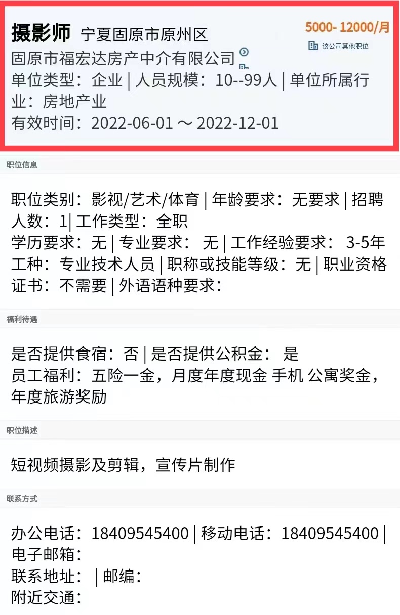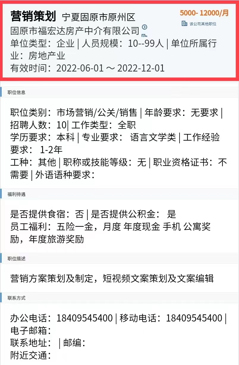 公司:固原市福宏达房产中介有限公司