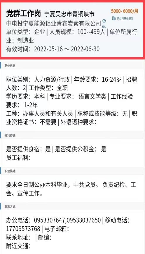 公司:中电投宁夏能源铝业青鑫炭素有限公司