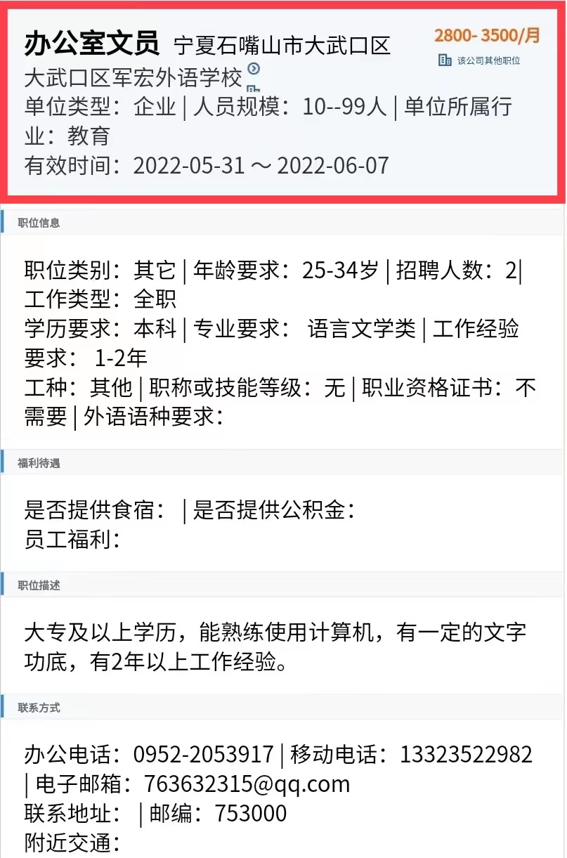 公司:大武口区军宏外语学校