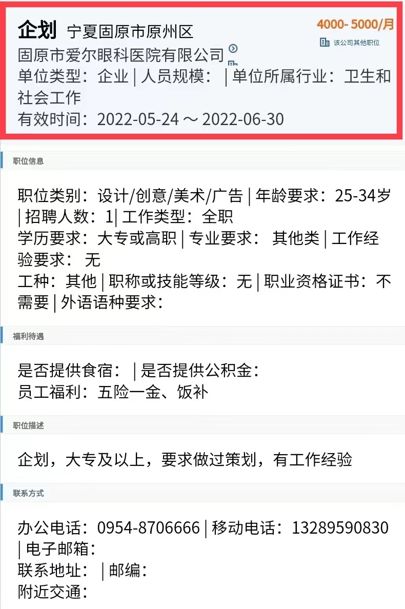 公司:固原市爱尔眼科医院有限公司
