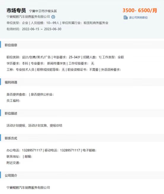 5、公司:宁夏鲲鹏汽车销售服务有限公司
