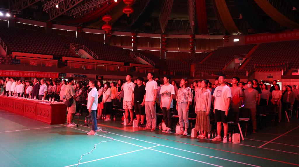 (一)全体起立,奏唱国歌