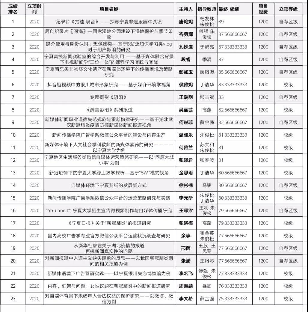 答辩会上,所有项目主持人依照顺序,以幻灯片展示与语音同步解说的方式,对项目选题、申请团队知识储备、项目方案、答辩表现及研究价值与成果,在规定的时间内做出了详略得当的阐述。遵循“兴趣驱动、自主实践、重在过程”的原则,同学们选题具有一定的学术价值、理论意义和现实意义,立意新颖。答辩内容充实、论证充分、十分精彩。每个项目介绍完毕后,评审老师们都进行了综合性评价,结合各项目的学科特点,针对项目优缺点、项目执行方案以及项目后期规划等一系列问题,给予了指导性建议,促进各项目进一步完善。在这次答辩中,各项目各具特色。《纪录片<拾遗·埙音>——探寻宁夏非遗牛头埙》《宁夏高校新闻实验室的综合开发与利用 ——基于媒体融合背景下电视新闻学“三位一体”的课程学习实践与实战》等一系列项目结合了丰富的文献材料,条理清楚、考察详细,显示出一定的专业性,并且结合社会实际,研究设计合理,具有很强的现实意义。