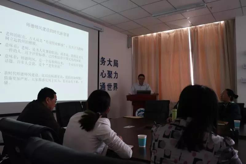 4月17日下午,我院在文荟楼四楼会议室举办“清风校园”系列活动之师德师风建设专题讲座。会议由贝宝官网党总支书记周强主持。