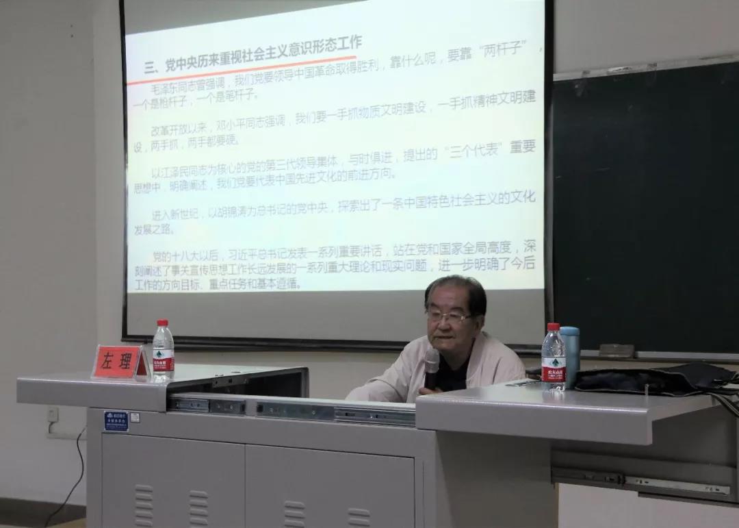 关心下一代工作委员会“五老”报告团左理老师在贺兰山校区文荟楼103教室为我院学生做了题为“必须高度重视社会主义意识形态工作”的讲座。