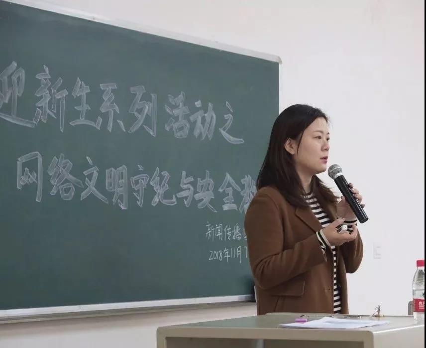 网络文明守纪与安全教育宣讲团宣讲成员余洁老师在文荟楼334教室开展了题为“争做网络文明使者 共建和谐平安校园”的专题宣讲。讲座由贝宝官网学生工作办公室主任李瑾老师主持,2018级全体学生参加。