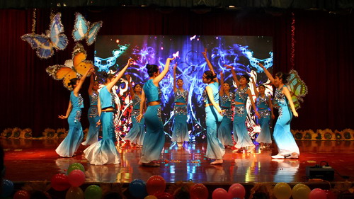 表彰大会结束后,迎新晚会正式开始。本次晚会共分为“沧笙踏歌、阑珊尽舞”、“ 绮年玉貌、剑胆雄心”和“无限律动、雅韵翩然”三个篇章,各篇章节目独具韵味,风格迥异。歌舞、创意舞蹈、朗诵、年代秀等精彩的节目为观众呈现了丰盛的视听盛宴。开场舞《墨韵》展示了水墨丹青的中国古画;创意小品《钟点工》生动展现了大学生的青春与活力;诗朗诵《我骄傲,我是中国人》抑扬顿挫、慷慨激昂,爱国的热情感染着每一位观众的心;《歌曲串烧》悠扬的音符向观众传播着每个年代独特的印记;舞蹈《一步之遥》让观众徜徉在高贵华美的音乐之中。整场晚会精彩不断,高潮迭起,赢得台下阵阵掌声,欢呼声一浪高过一浪。最后,晚会在古典舞《彩云之南》落下帷幕。