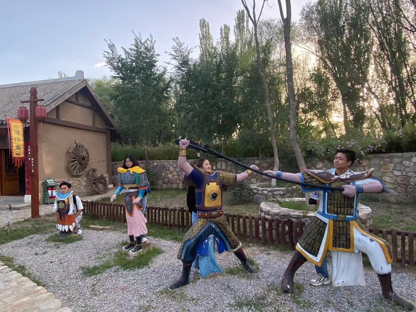最后,实训小队来到集文化旅游与休闲度假为一体的西夏风情园,对景区内的西夏建筑、西夏文化和繁荣在西夏时期的市井街进行了走访拍摄,并近距离观摩录制了传统陶艺制作。