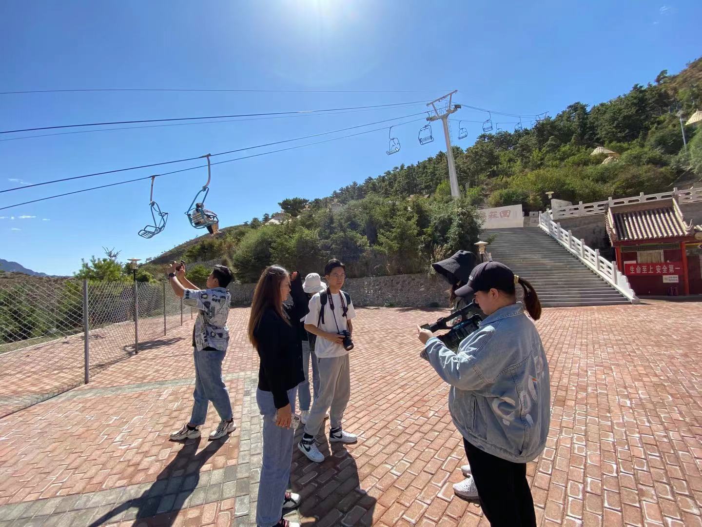 实训小队第一站来到了贺兰山苏峪口国家森林公园,团队在景区工作人员的带领下,经过银巴古驿进行素材拍摄后由索道进入到森林公园的核心观景区青松岭。在青松岭,老师对实训小队的作品拍摄方向进行了指导培训,并对新媒体作品产出做了严格要求,小队成员在互相配合中,运用单反相机、灵眸及手机等设备进行了多手法、多角度的采拍录,顺利完成素材收集任务,为作品产出打好了基础。