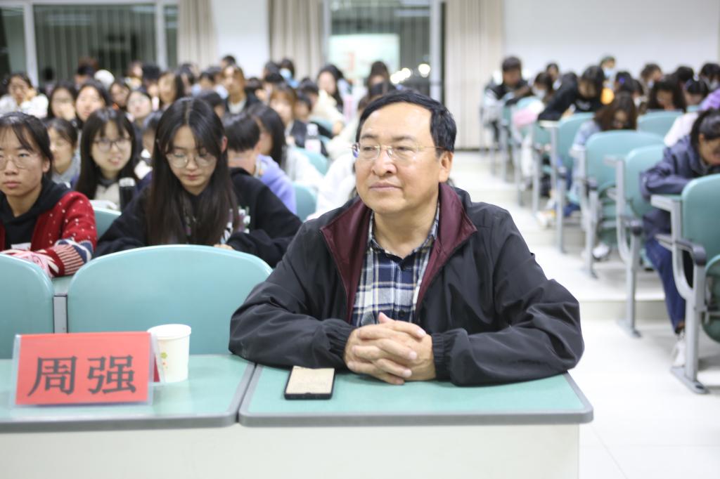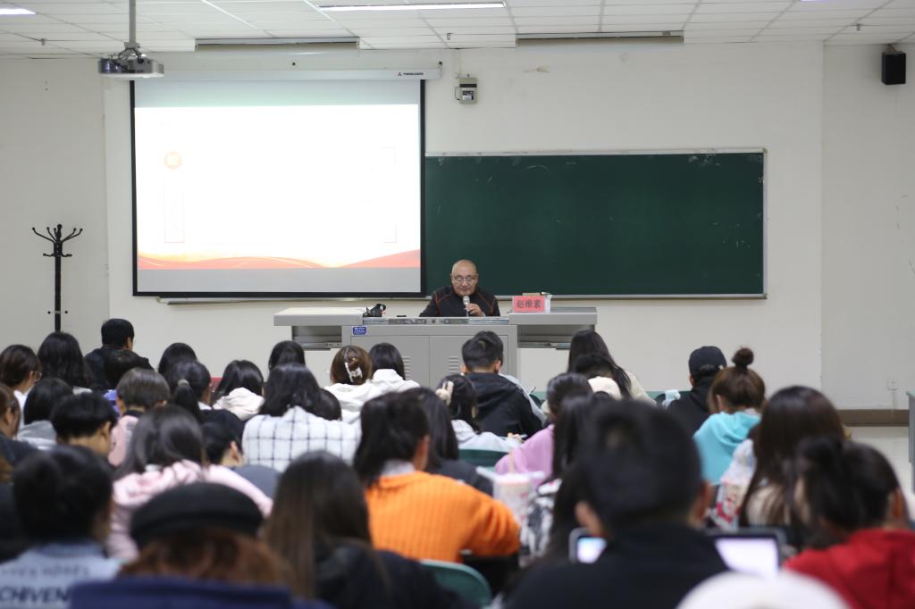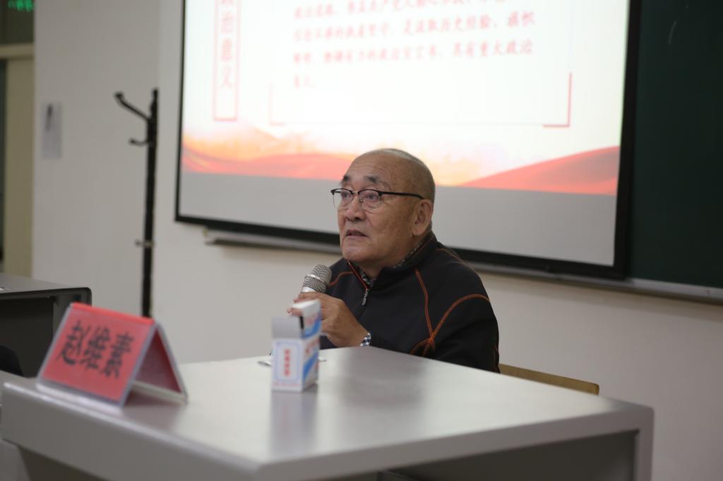 关工委主任赵维素主讲,我院党总支书记周强主持,全体在校党员及积极分子参加。