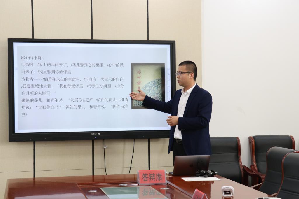 本次比赛以“上好一门课”为竞赛理念,由教学设计、课堂教学和教学反思三部分组成,课堂教学比赛环节参赛老师按照抽签顺序进行了20分钟的授课。杨璠播放电影片段,对比内容后引出了蒙太奇的具体概念,并从《火车进站》、《一个美国消防员的生活》、《一个国家的诞生》三部影片入手,突出表现固定镜头到多个镜头的拼接、转场的转变,展示线性叙述到综合运用蒙太奇的变化,介绍了蒙太奇的产生与发展,概述其作用与意义;王雅蕾从“虐猫”、“铜须门”等11个事件入手,以案例分析的方式阐述了正向效果与负向效果,从原因、影响、应对三个方面展开叙述网络舆情传播效果的反转。徐舒则以人物经历、家庭背景为线索,详细介绍第一个家喻户晓的女作家冰心。同时,重点讲解冰心在《晨报》与《小说月报》两个阶段的经历,强调了这两阶段对冰心的成长有着重要作用,并对冰心的写作特点与写作问题深度剖析。教师们精彩的展示结束后,各位评委从教学设计、课堂教学和教学反思三个维度进行评价。“教学内容要精、明、清、显,层层深入,这样才能够提起同学们的兴趣,引发思考。”赵智宏强调,教师要严格遵守比赛要求,将学情分析、思政教育与理论联系实践相结合,强化授课内容,规范教案设计、时间安排、课堂把握,同时注重授课反思,加强自身教学能力。王岩森分析了三位教师的优缺点。他将关键字作为线索,以实际授课举例,提出建议:“教师需要厘清逻辑关系,掌握最基本的概念,真正做到从学生的角度来讲授课程。”比赛在各位评委的精彩点评中圆满结束。
