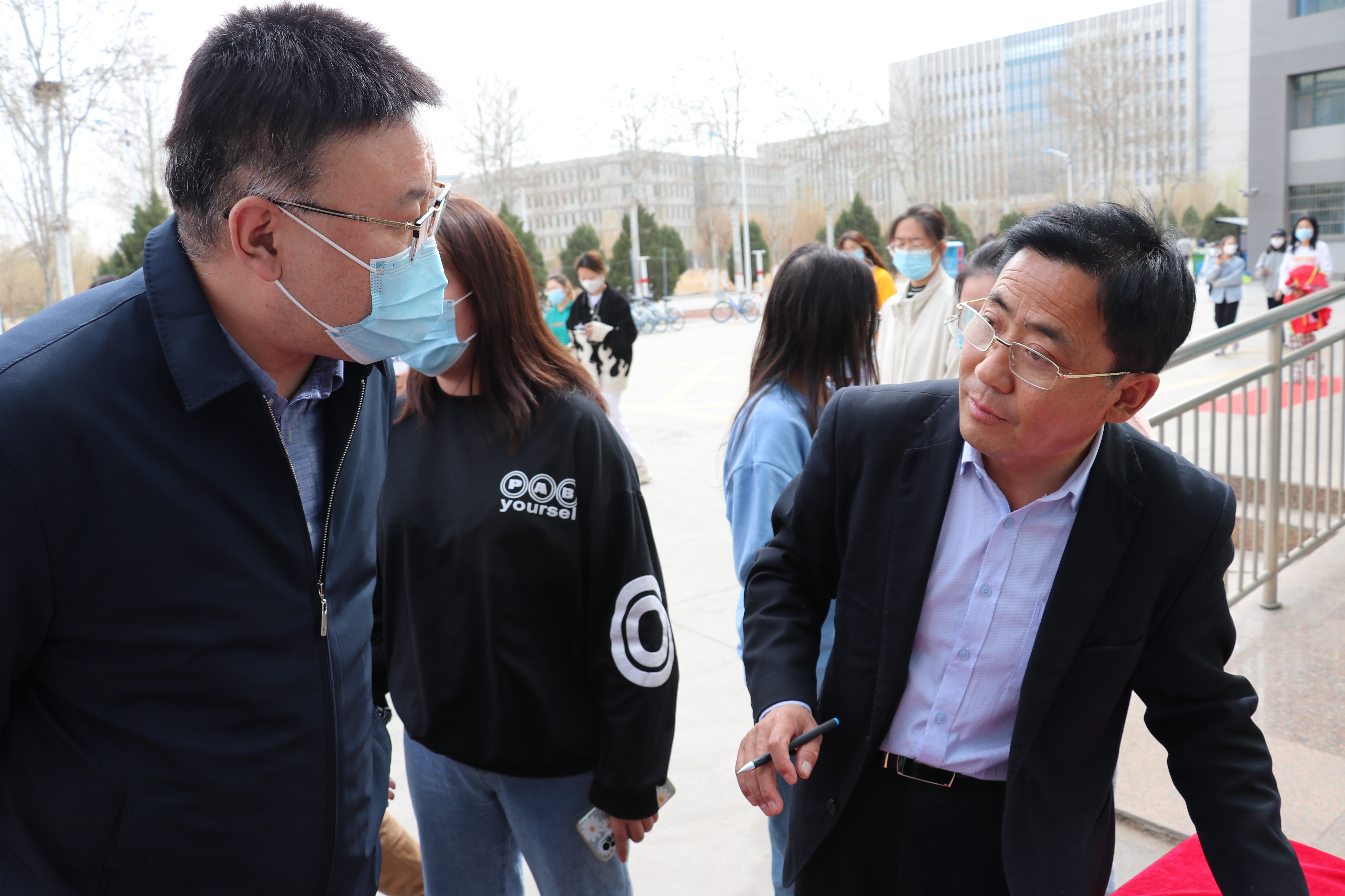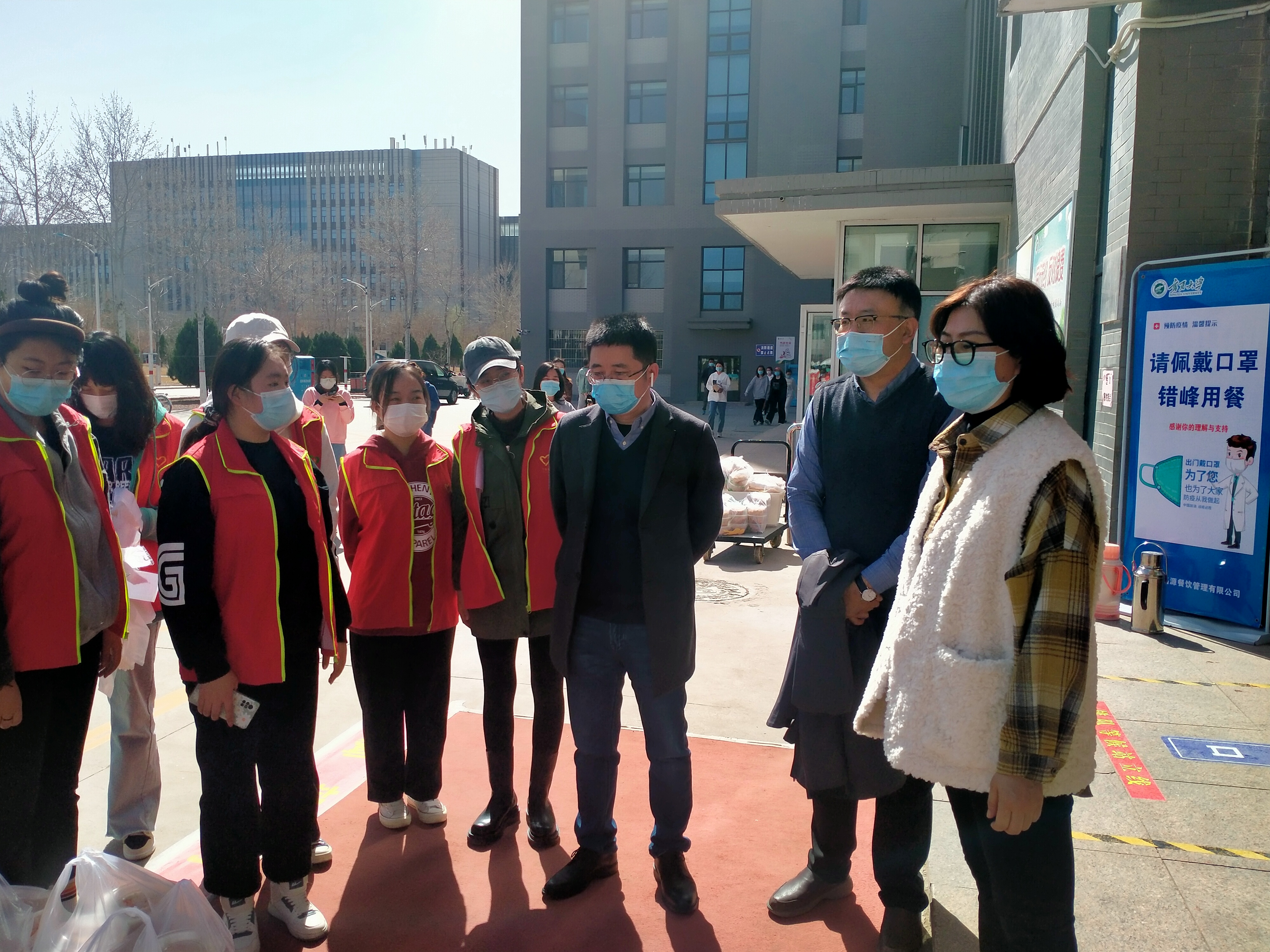 3月15日中午,贝宝官网党总支书记潘瑞,执行院长李世举,党总支副书记李晓珉来到志愿者送餐工作点,对志愿者进行慰问。