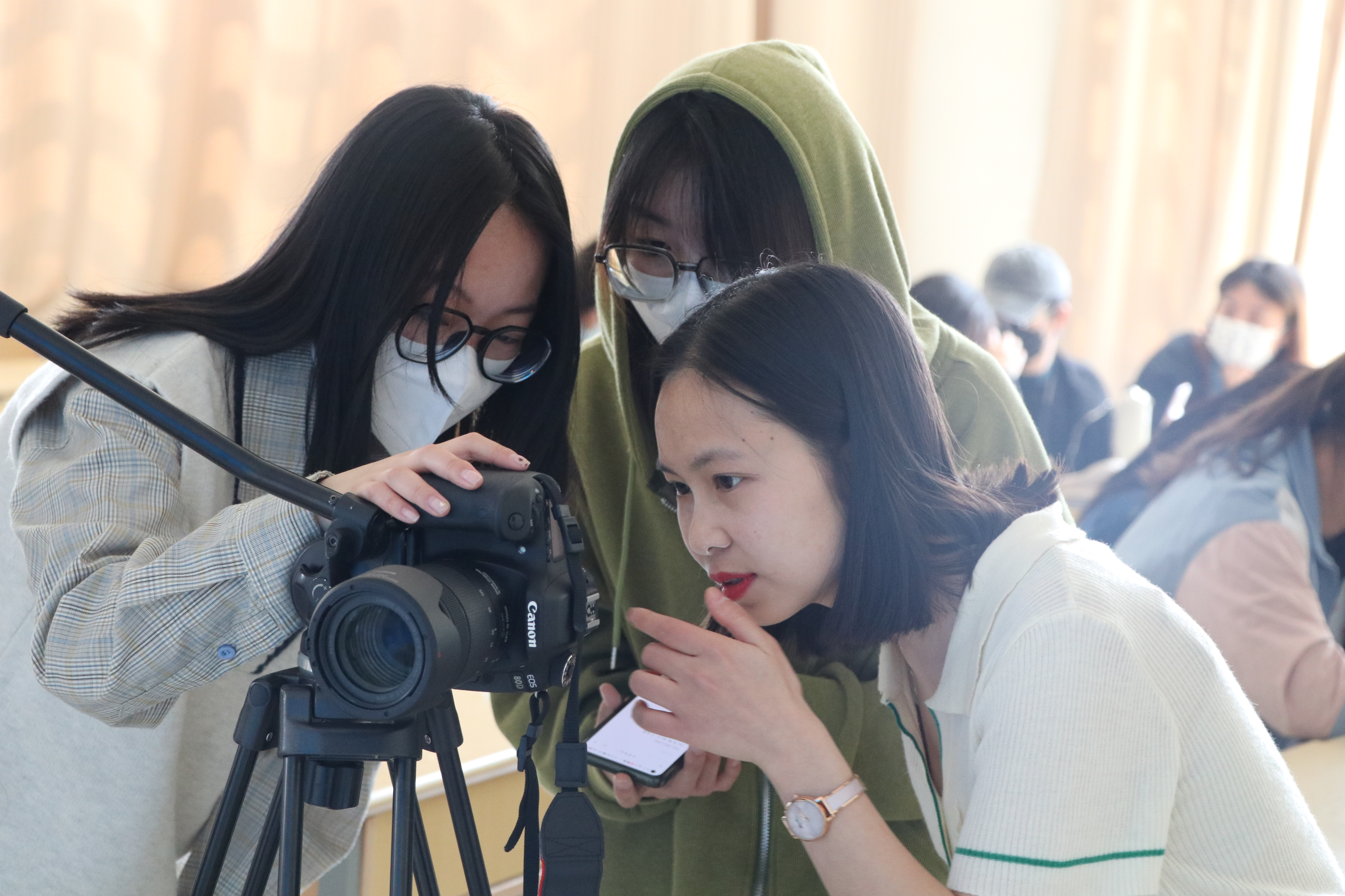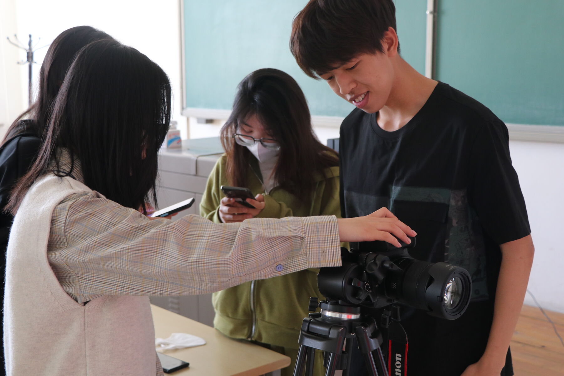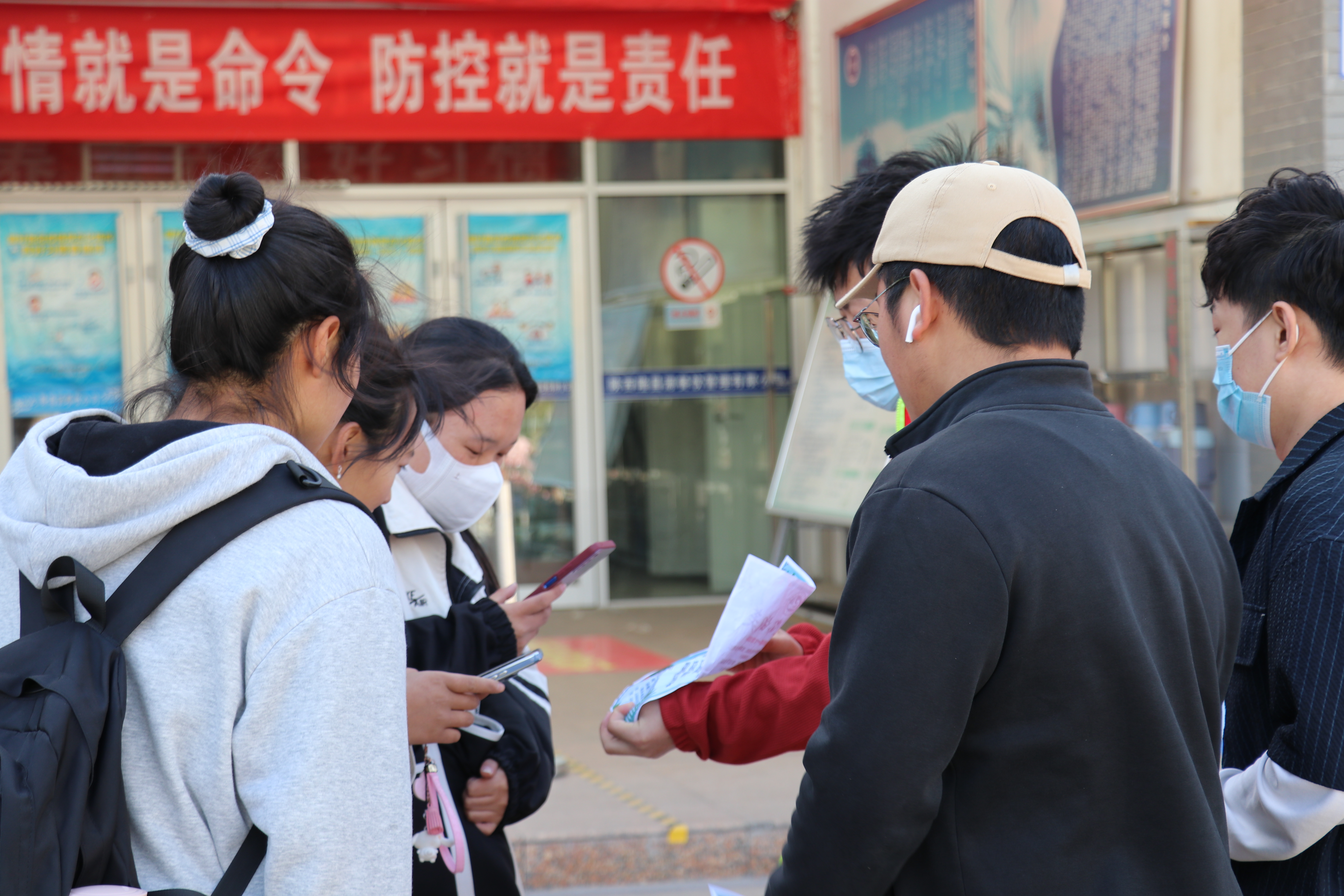 志愿者向同学们展示照片提醒同学们登记个人信息