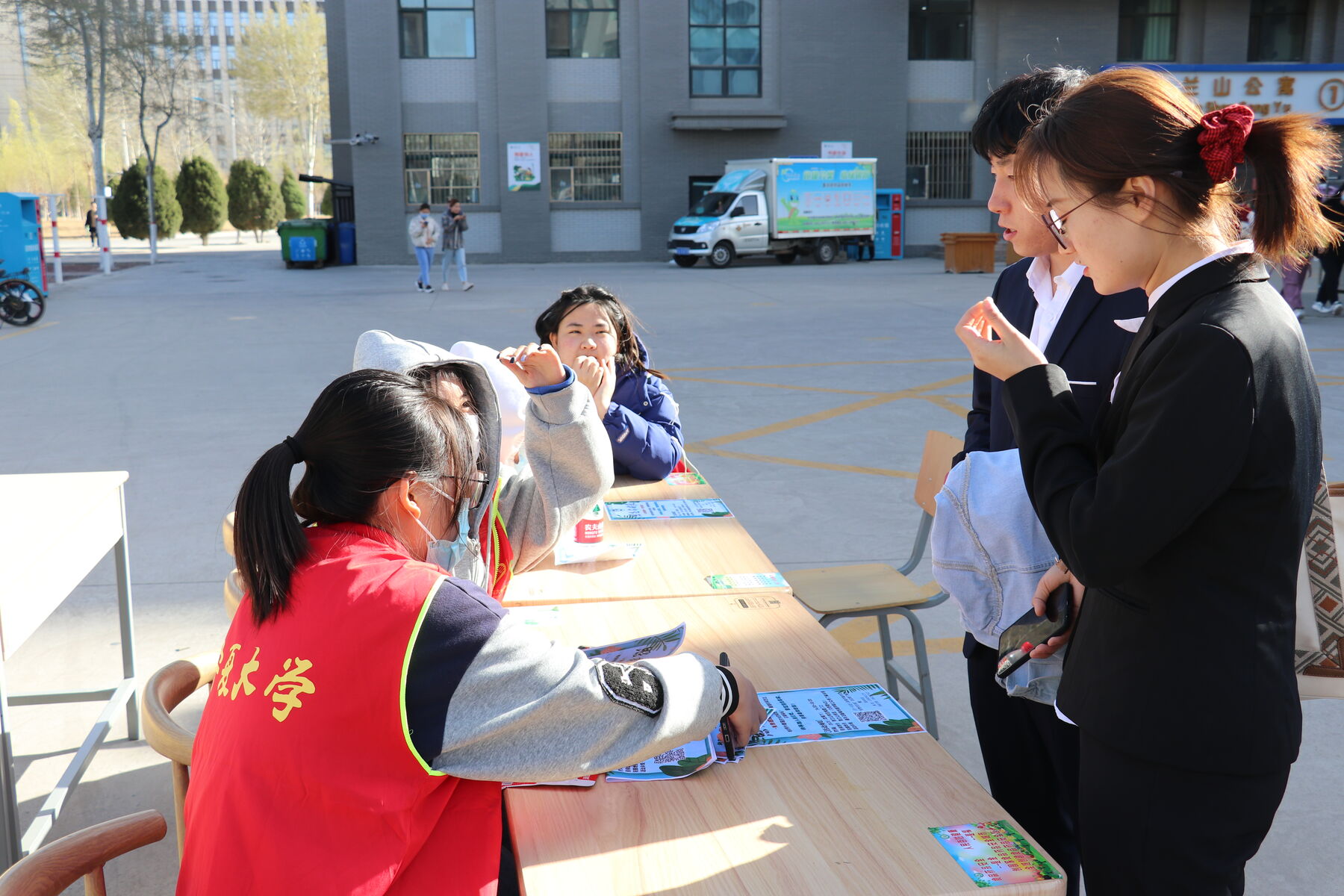志愿者向路过的同学们宣传活动介绍具体内容