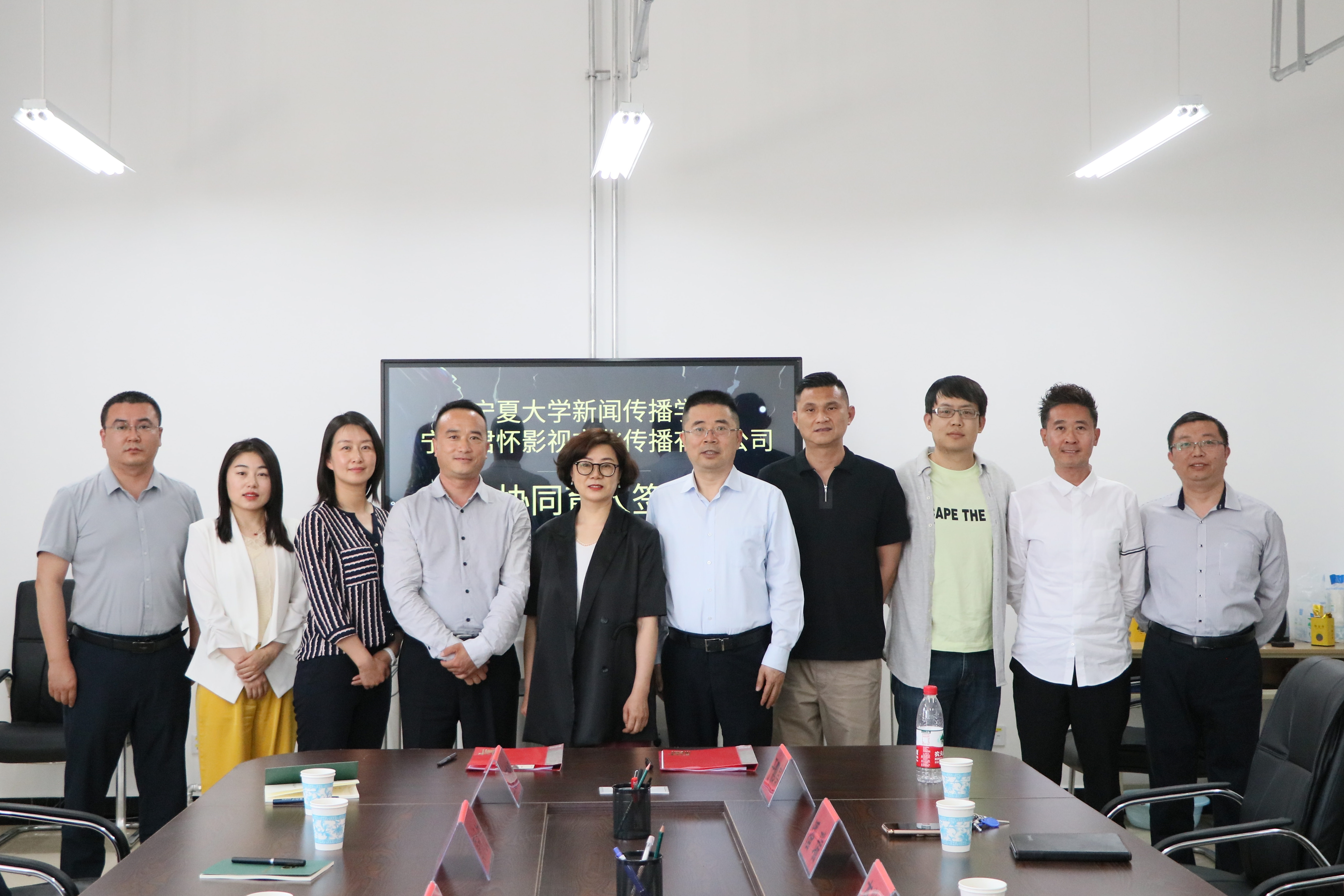 与宁夏君怀影视文化传播有限公司校企协同育人签约仪式在新闻大楼318会议室举行。宁夏君怀影视文化传播有限公司法定代表人高永波、宁夏君怀影视文化传播有限公司法律顾问樊蓉、贝宝官网党总支书记潘瑞、执行院长李世举、副院长张静涛、于鹏亮、广告系主任朱俊松出席仪式。