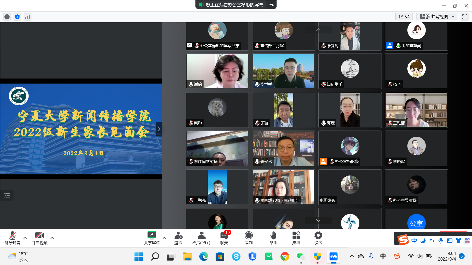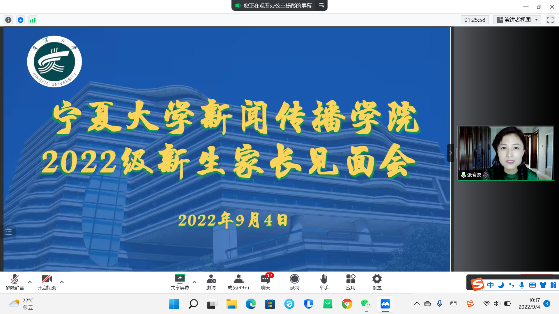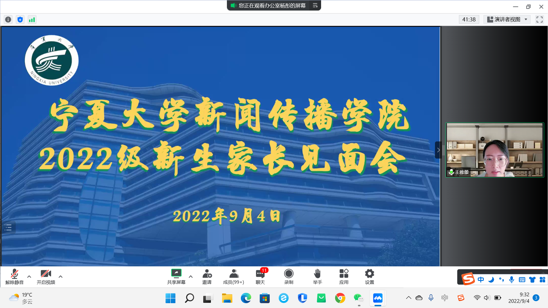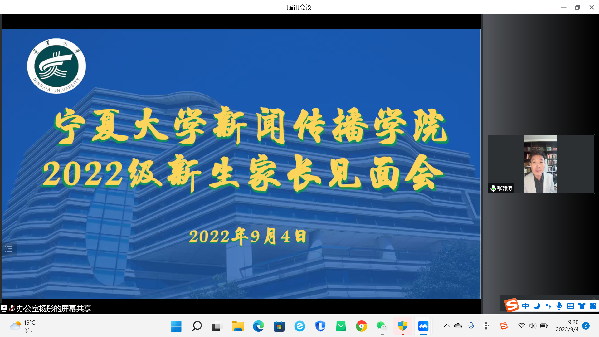 9月4日上午,我院于腾讯会议召开了2022级新生开学典礼及新生家长见面会,贝宝官网领导班子成员、系主任、新生班主任及2022级本科生、研究生及新生家长在云端参加了会议,会议由学生工作办公室主任雷丽霞主持。