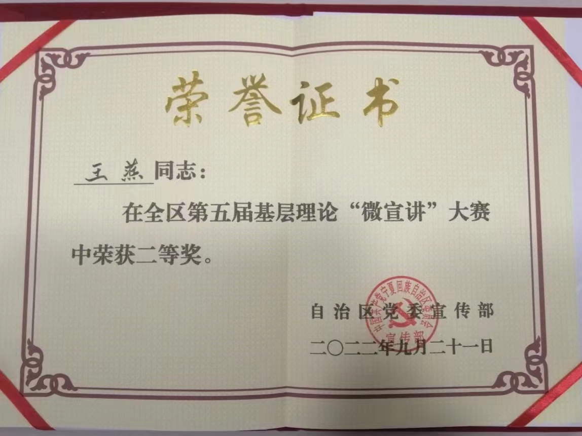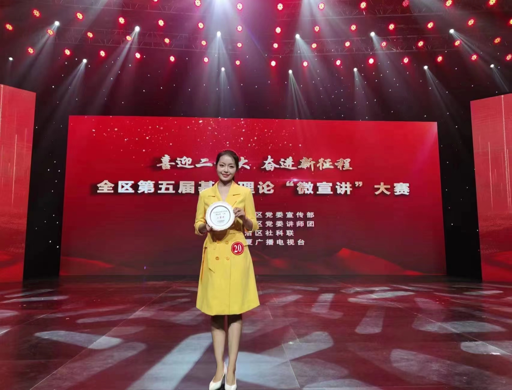 9月21日,由自治区党委宣传部主办、自治区党委讲师团承办的第五届基层理论“微宣讲”大赛决赛在宁夏广播电视台演播大厅落下帷幕。我校贝宝官网 2020级学生王燕荣获二等奖。
