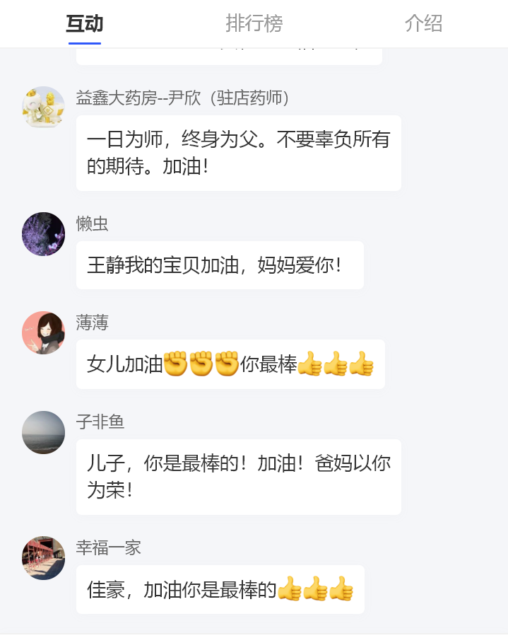 讲座最后,秦莉建议家长们能够和孩子多多沟通,将家长的爱真切地表达出来,给予孩子爱的鼓励,共克时艰。家长们纷纷在评论区写出对孩子的寄语,表达出对孩子真切的关心和诚挚的爱。