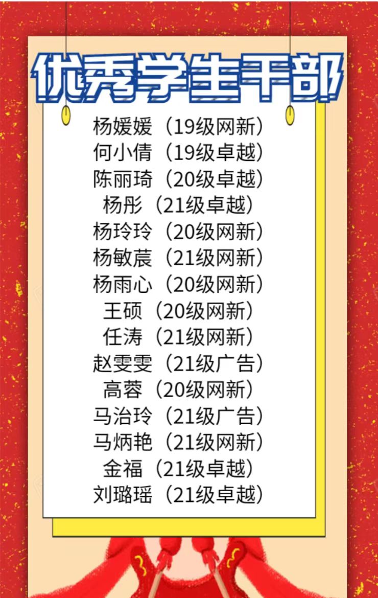 2022—2023学年团委、学生会负责人名单》,共有15人获得“优秀学生干部”称号。