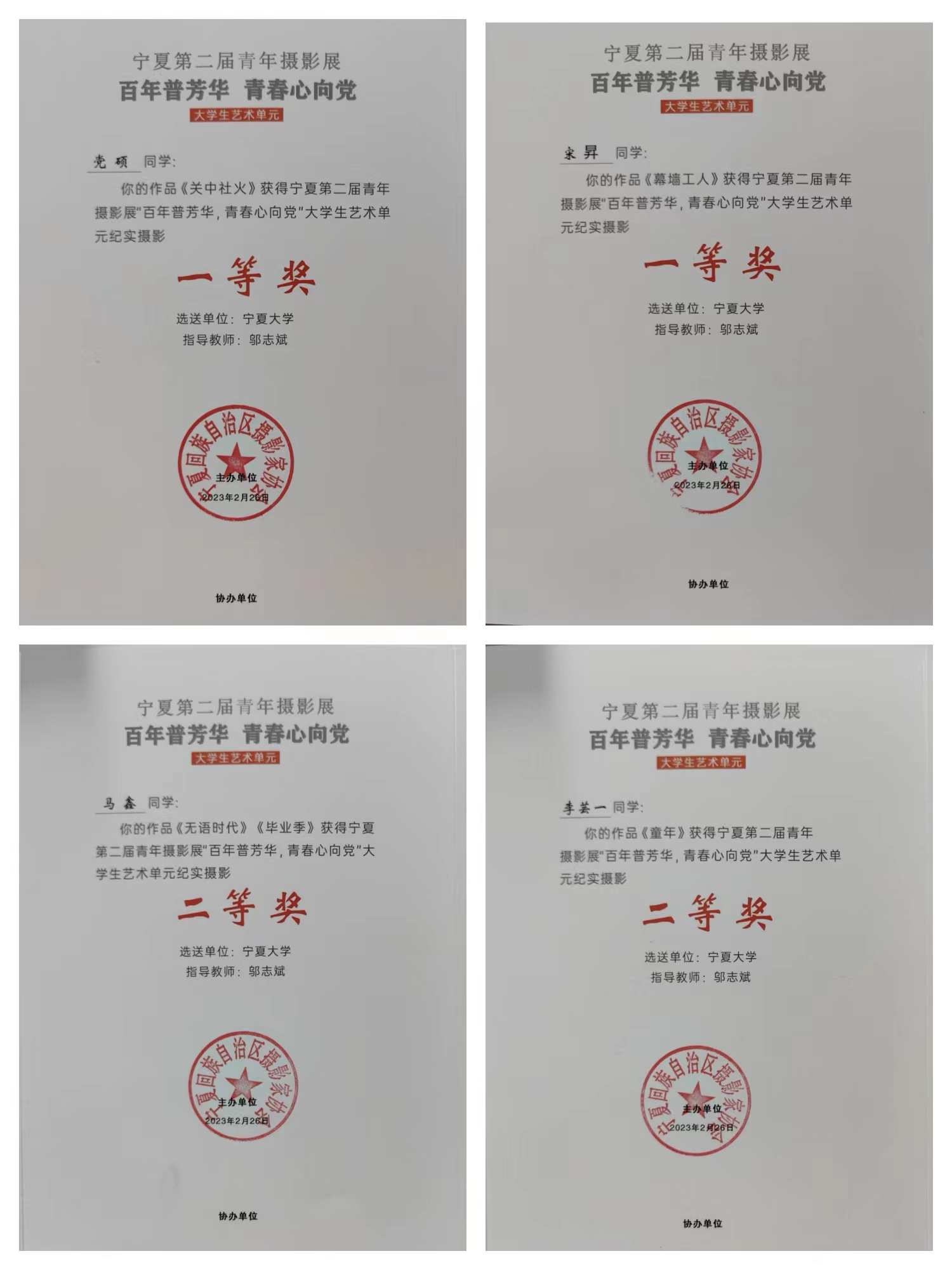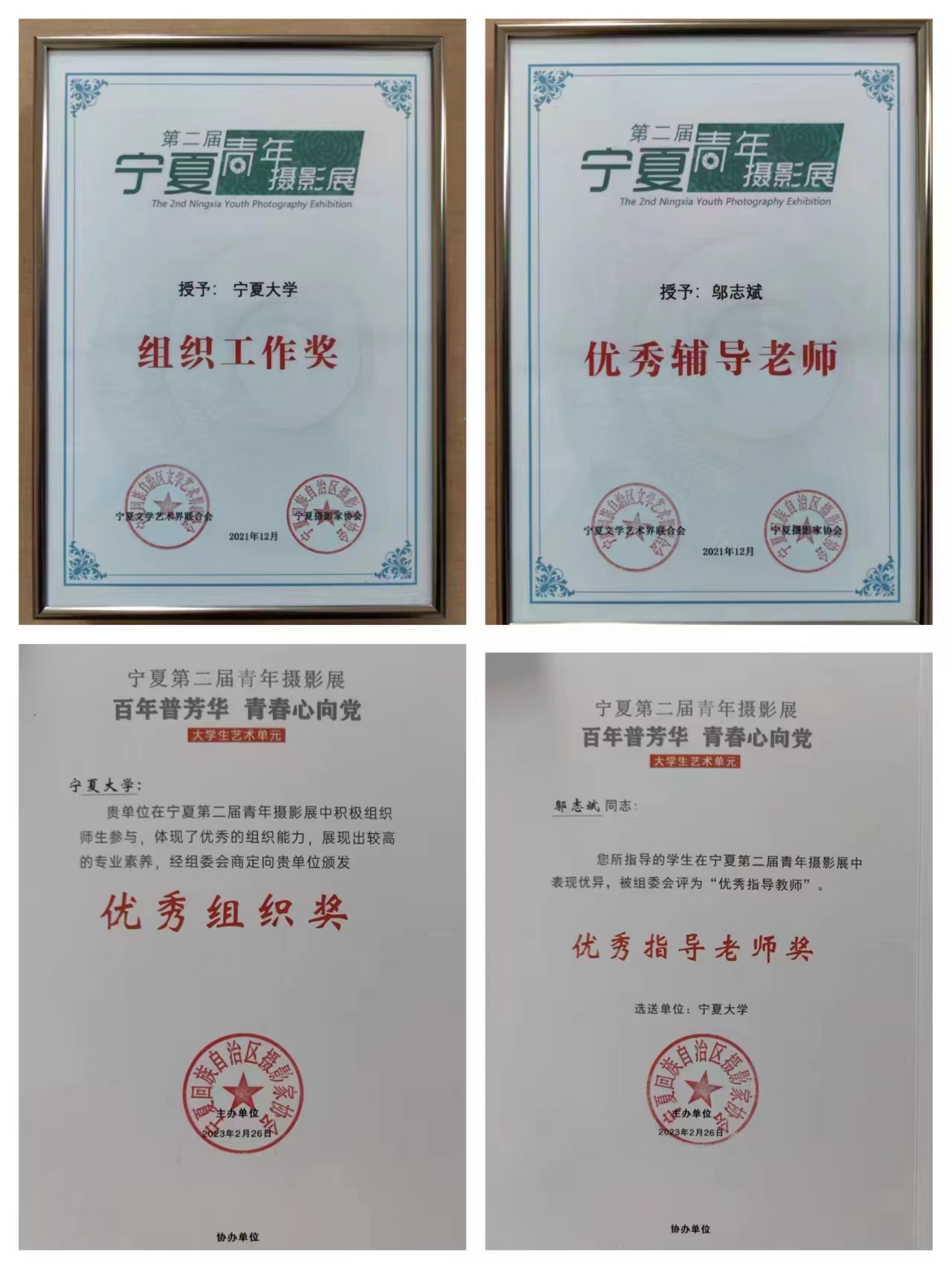本次摄影展我院师生17人27组照片入展,9位师生分获一、二、三等奖,其中,一等奖两名,二等奖五名,三等奖两名;三位同学获潜力摄影人奖;邬志斌老师获优秀指导教师奖,自治区文联、区摄影协会授予贝宝官网