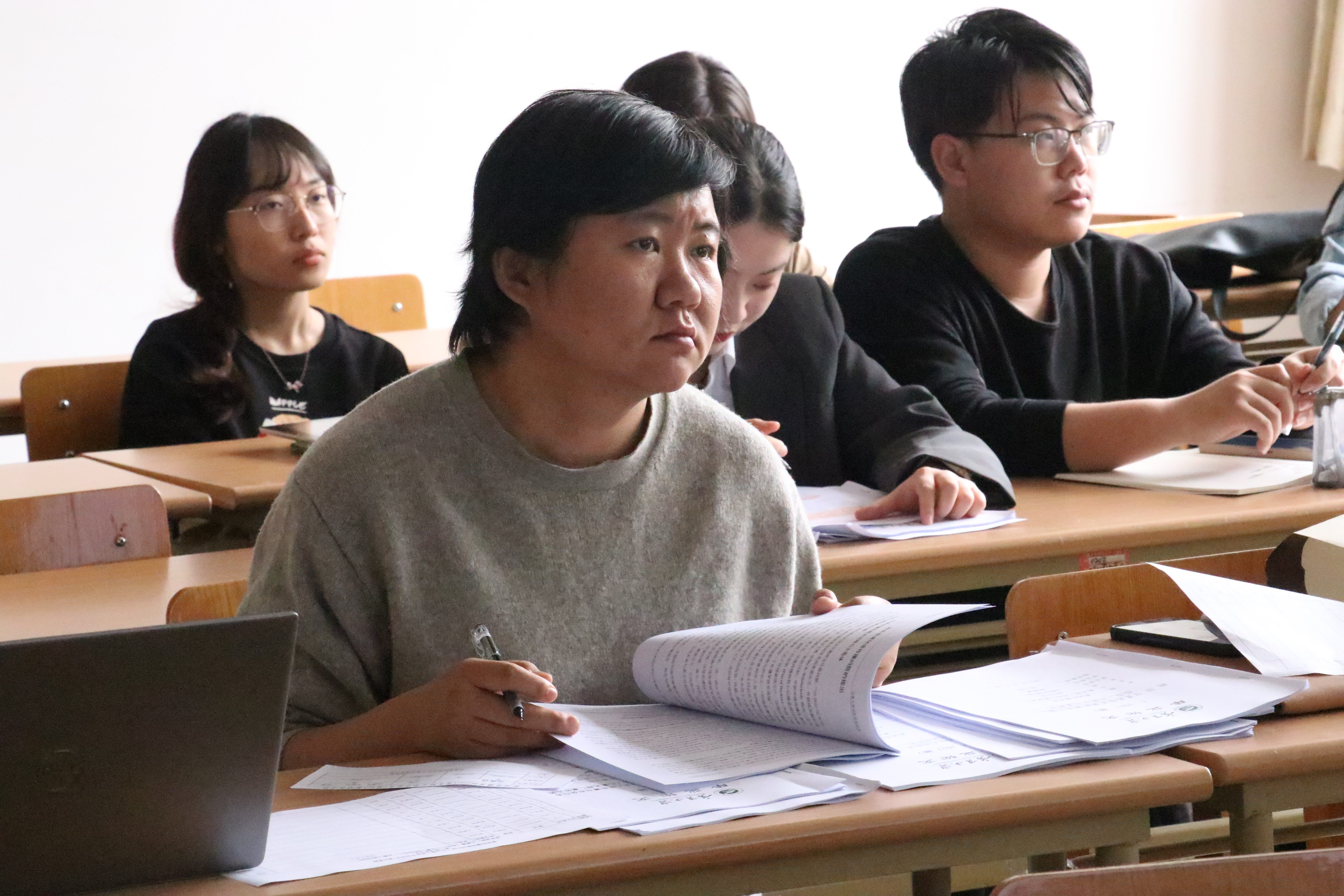 在正式答辩前,学生认真准备各自资料及发言稿,做好准备工作,确保答辩的顺利进行。答辩流程主要分为“学生阐述”和“老师提问”两个环节。毕业生先进行论文的阐述,其次老师针对其论文的不足做出修改和总结提问。