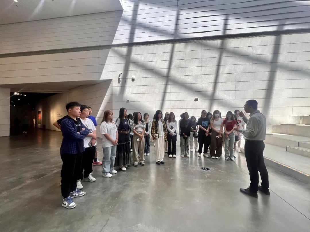 在美术馆内,郭江宏部长为我们详细介绍了美术馆的历史背景、建筑特色以及近年来的展览活动。他提到,银川当代美术馆不仅是一个展示艺术品的地方,更是一个推动文化交流和艺术创新的平台。接着,同学们参观了各个展厅,欣赏了来自不同艺术家的作品。同时,同学们还不时驻足讨论,表达自己对艺术的见解和感受。