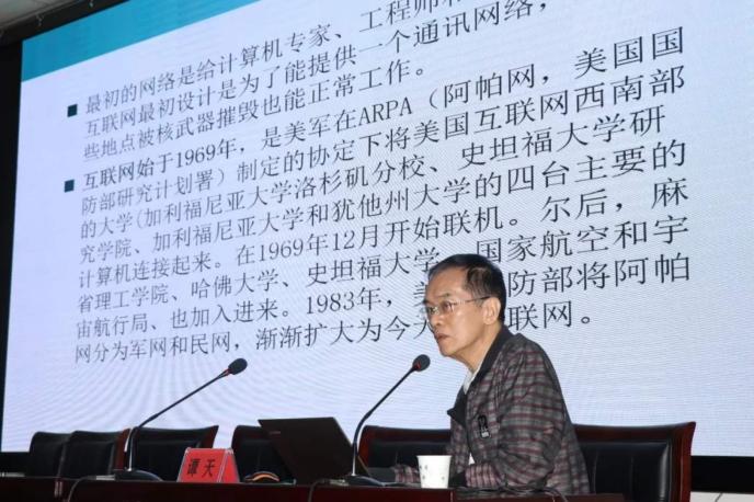 教授谭天主讲,朱俊松老师主持,2015、2016、2017级学生参加了讲座。