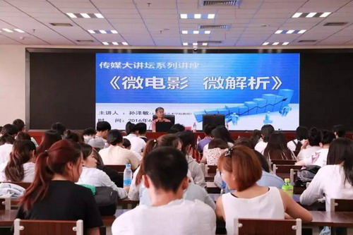 讲座伊始,孙泽敏教授围绕“何谓微电影,微电影时长几何,微电影范畴”三个问题展开解析,借用《后·三峡》、《红炉火》、《回家》等多部精彩的微视频和微电影,帮助大家更好地理解微电影的内涵和定义。孙泽敏教授指出当下微电影存在传播负能量等问题,提出微电影应微在鲜活、微在大义、微而不腻,具备生动性、独特性,强调正能量和真善美,有视觉吸引力,耐看又有味等特点。孙泽敏教授希望新传学子在全媒体融合的时代,能够充分利用微电影的平台,培养创新创意能力,提升专业技能,成为优秀的新媒体人才。